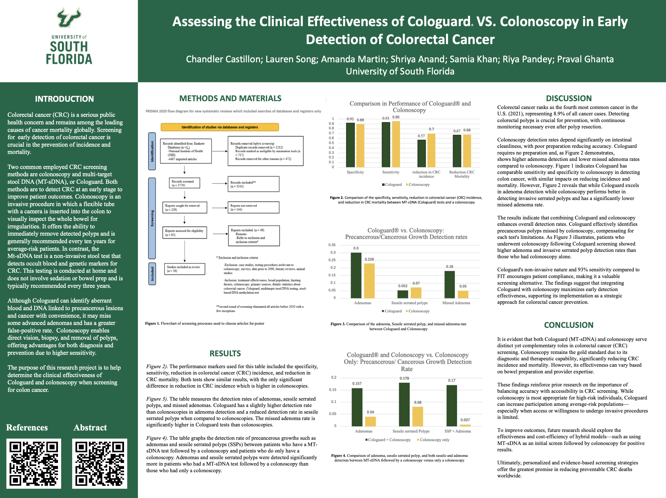 - Inclusion: Treatment effectiveness, broad population, limiting factors, colonoscopy primary sources, details’ statistics about colorectal cancer, Cologuard, multitarget stool DNA testing, stool-based DNA methylation test.
